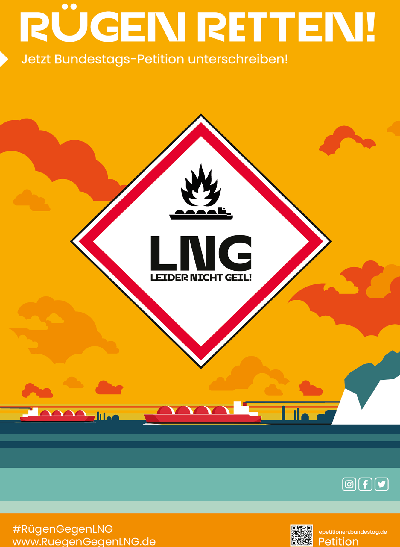 Direkt an der Küste Rügens soll Europas größtes LNG-Infrastrukturprojekt gebaut werden. Damit entstehen irreparable Schäden, die über die Zerstörung des Ökosystems von Deutschlands größter Insel hinausgehen. Auch ein Alternativstandort auf der Insel wird hieran nichts ändern. Das LNG-Projekt ist umweltschädigend, teuer und überflüssig: LEIDER NICHT GEIL!