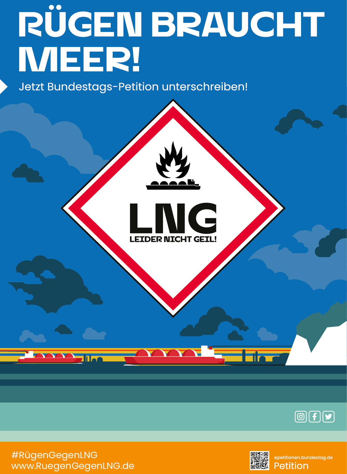 Direkt an Rügens Küste soll Europas größtes LNG-Infrastrukturprojekt gebaut werden. Damit wird das Ökosystem von Deutschlands größter Insel irreparabel zerstört. Die Politik will das Megaterminal für Flüssigerd- und Frackinggas jetzt schnell und ohne echten Dialog mit den Menschen, Gemeinden, Betroffenen und Experten durchsetzen. Verfahren und Fristen werden stark verkürzt, Gesetze sollen im Eiltempo verändert werden. Das ist, umweltschädigend, teuer und überflüssig – eine fossile Sackgasse: LNG – LEIDER NICHT GEIL!